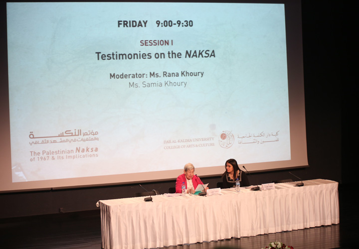 وقد تضمن الاختتام جلستين ، الجلسة الأولى بعنوان "شهادات عن النكسة"، والتي أدارتها السيدة رنا خوري نائب الرئيس للتنمية والتطوير في دار الكلمة الجامعية، حيث استعرضت الكاتبة والناشطة الاجتماعية سامية خوري شهادات قد مرت بها خلال فترة النكسة.