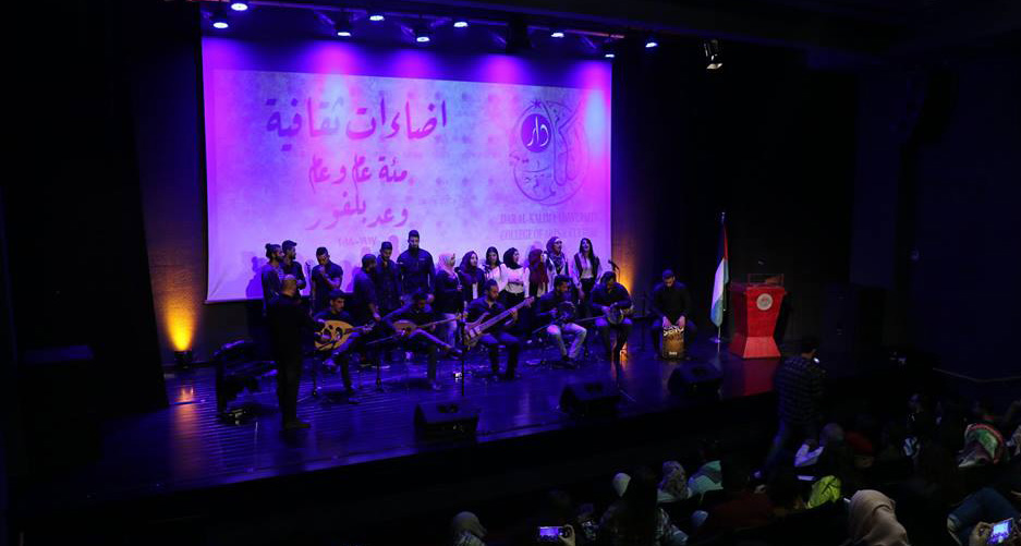 وشملت الفعالية عروض موسيقية قدمها طلبة برنامج الأداء الموسيقية، حيث تنوعت العروض الموسيقية ما بين الأغاني الشعبية والتراثية الفلسطينية والوطنية من الفترات اللاحقة. فمنها اغنية  من سجن عكا، يا فلسطينية، يا زهرة النيران، أناديكم، الحق سلاحي، احترف الحزن والانتظار، اصبح الآن عندي بندقية، عاب مجدك وهدي يا بحر هدي.