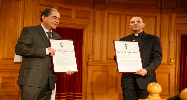 It is truly an honor to be with you on this day receiving the Olof Palme Prize. I have received in the past several prestigious awards, but this one is special to my heart. It is very unique because it carries the name of Olof Palme, one of the most courageous political leaders in the second half of the 20th century, who dared to stand up in the face of empire; a visionary leader, who knew that apartheid should not be tolerated, and that the cry for liberation in many countries in the global south should be heard and supported.